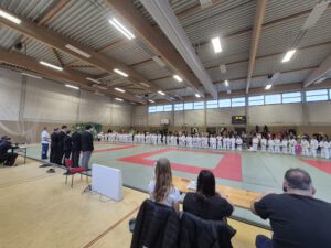 Mit 180 kleinen Kämpfern und Kämpferinnen aus 22 Vereinen, die aus vier Bundesländern angereist waren, konnten ordentliche Kampfpaarungen festgelegt werden. Es wurde in gewichtsnahen Gruppen, getrennt nach Jungen und Mädchen, im Vierer-Pool gekämpft. Der Wettkampf startete pünktlich, und die Umsetzung der Planung verlief problemlos. Die Atmosphäre war trotz der spannenden Kämpfe sehr ruhig und freundschaftlich. Alle begegneten sich mit Respekt und Wertschätzung. Wir halfen uns gegenseitig und stärkten die Kinder in Bezug auf Mut und Selbstbeherrschung. Ganz so, wie es die Judowerte lehren.